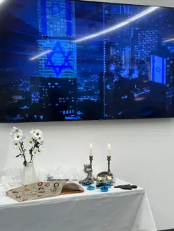 Hagit Oren, JSDD’s Judaic Coordinator leads a lesson about the weekly torah portion. The group also takes time to talk about their hopes for peace in the Middle East including the release of all hostages held in Gaza. They offer prayers for peace and freedom. To end the evening, the group sings Shabbat songs in Hebrew and English, concluding with the Mi Shebeirach prayer for those in need of healing.